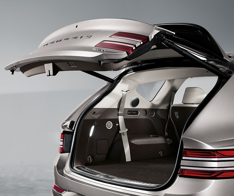 제네시스 GV80은 후면부는 전면부와 마찬가지로 두줄의 테일램프를 구성했고 이러한 수평적인 디자인은 차체를 넓어보이게 합니다. 또한 후면 와이퍼 쪽 트렁크 도어 오픈을 위한 버튼이 있어 손쉽게 트렁크 도어를 여닫을 수 있습니다.